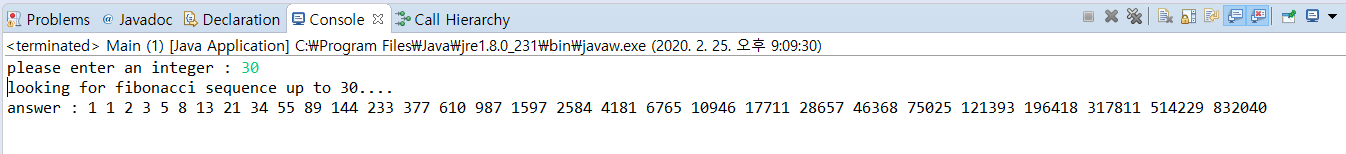 그럼 이 함수를 사용해 아까 구하려고 했던 피보나치의 30번째 항을 구해보도록 하겠습니다.
